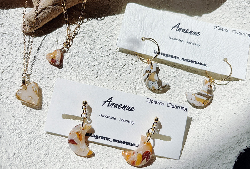 常陸大宮市でポリマークレイというドイツ製の「焼くと軽く固くなる粘土」を使って一点物アクセサリーを制作しているanuenue(アヌエヌエ)と申します♡